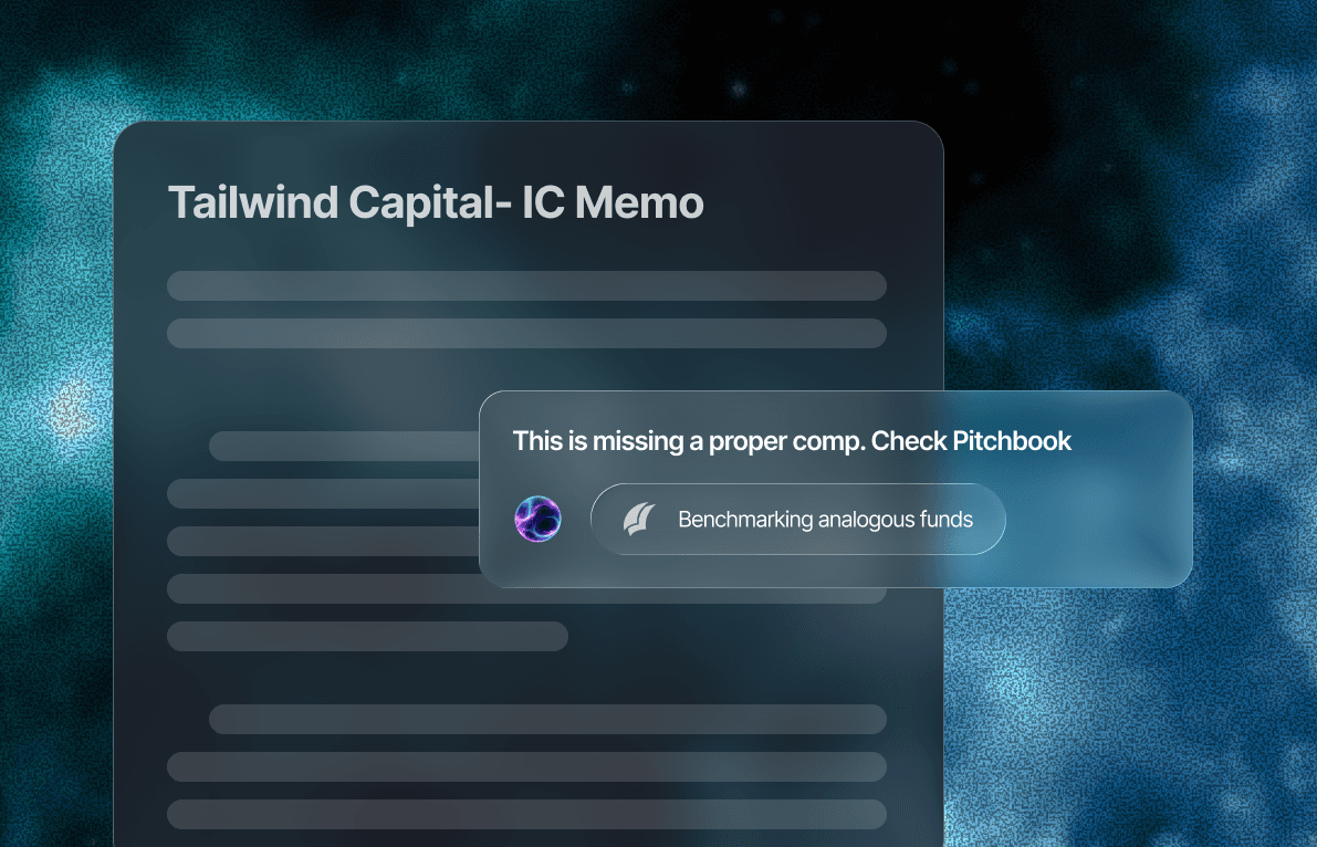 In-house document generator where IRIS auto-generates a bespoke IC memo from everything it knows — research, flags, data room, calls. Chat with IRIS to refine and collaborate towards a final output that is exactly what you need it to be.